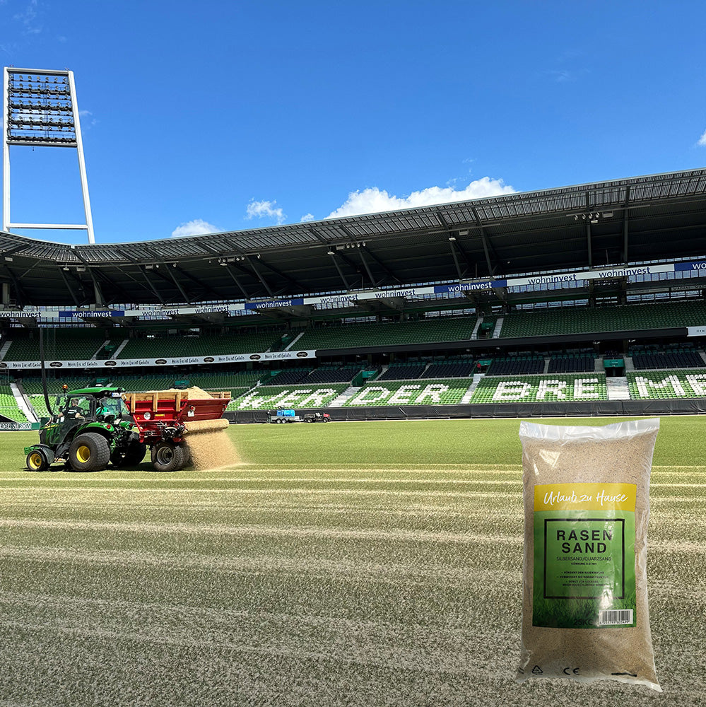 Wir sind stolzer Partner des SV Werder Bremen – denn wir beliefern ihn regelmäßig mit unserem hochwertigen Rasenpflegesand! Im Stadion sorgt unser Sand nun für optimale Bodenverhältnisse, eine verbesserte Durchlüftung und ideale Wasserdurchlässigkeit – perfekte Bedingungen für einen top gepflegten Bundesliga-Rasen. Ein großer Moment für uns, Teil des Spielfelds zu sein, auf dem Fußball auf höchstem Niveau gespielt wird!